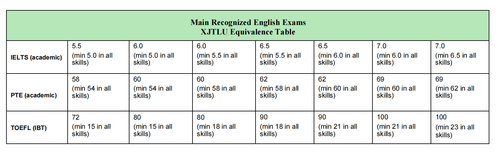 If you miss the English language requirements by 0.5 of an overall IELTS band but meet the language requirements for the Pre-sessional English (PSE) Course (including the minimum component scores or equivalents), you may be accepted onto the PSE course subject to Programme Director’s approval. Upon successful completion of the PSE course, you will be able to change your XJTLU Master’s offer letter to ‘Unconditional’ for the English level.
