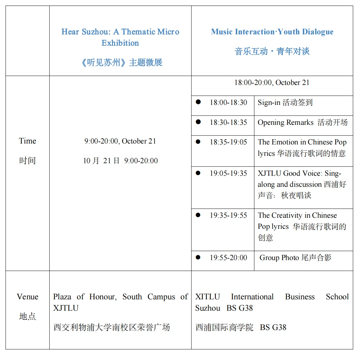 Chinese pop music is not merely the art of melody but the crystallization of words and emotion. Classic pop lyrics serve as emotional containers and collective memories for generations, subtly shaping our emotional states while also inspiring curatorial creativity. This session will delve into the world of Chinese pop lyrics, exploring themes of “emotion” and “creativity,” and will feature a small autumn evening sing-along and discussion with XJTLUers.