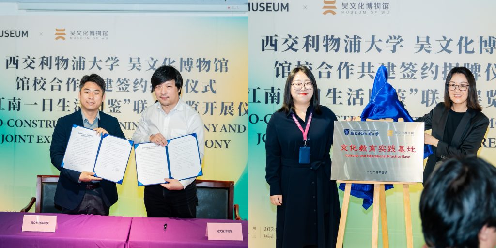 In 2024, XJTLU and the Museum of Wu established a Cultural Education Practice Base. This initiative further strengthens in-depth cooperation between the two parties in various areas including public services, academic research, performance collaboration, digital development, and cultural and creative product development, striving to make greater efforts in exploring the future development model of “Museum Plus University”.