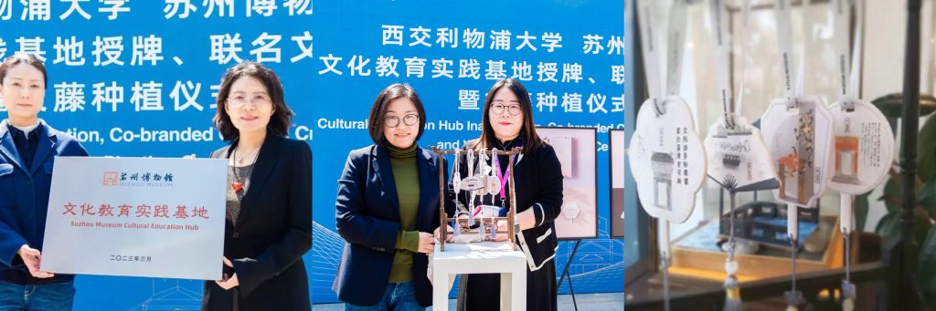 In 2023, Suzhou Museum held at XJTLU the plaque-awarding ceremony marking XJTLU as Suzhou Museum Cultural Education Hub, together with a co-branded cultural-creative product launch and a wisteria-planting ceremony. Shoots propagated from a 400-year-old wisteria once planted by Wen Zhengming (style Hengshan), a renowned Ming-dynasty artist and calligrapher, were planted on campus, symbolising the continuity of Suzhou’s cultural heritage.