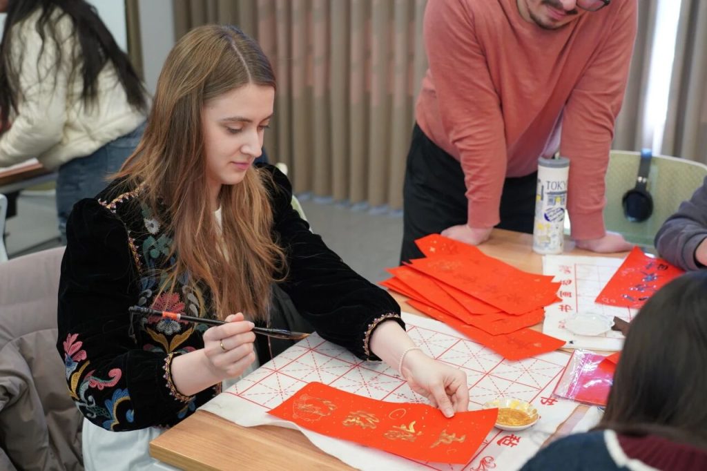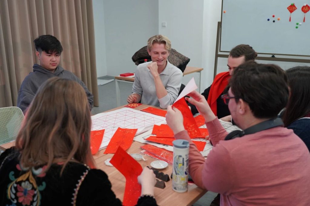 On 10th January, the Practical Chinese course at Xi’an Jiaotong-Liverpool University (XJTLU) concluded in a warm and lively atmosphere. Students from across the globe gathered together to celebrate the arrival of the Year of the Snake in a unique way, creating festive couplets and decorative paper-cuttings for the Spring Festival through traditional crafts such as calligraphy and rubbing.