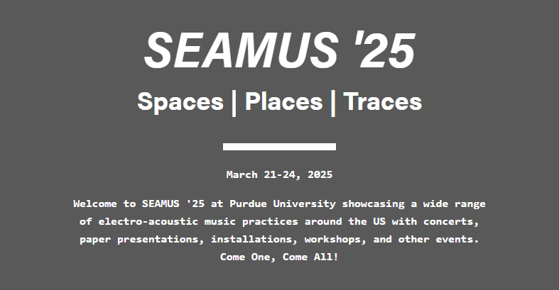 "The Eternalist Paradox" for an immersive 8-channel set-up was accepted for performance after a peer-review process at the Society for Electro-Acoustic Music in the United States National Conference 2025.The National SEAMUS Conference, first held 41 years ago, is hosted in 2025 by Purdue University's newly formed Department of Music, housed within the College of Liberal Arts and the Rueff School of Art & Design and Performance, in collaboration with Purdue's Rueff Galleries, Hall of Music, The Arts Federation, the Department of Theatre and Dance, and Laboratory for Acoustics and Music at Purdue (LAMP), from March 21-24, 2025 (Friday to Monday).