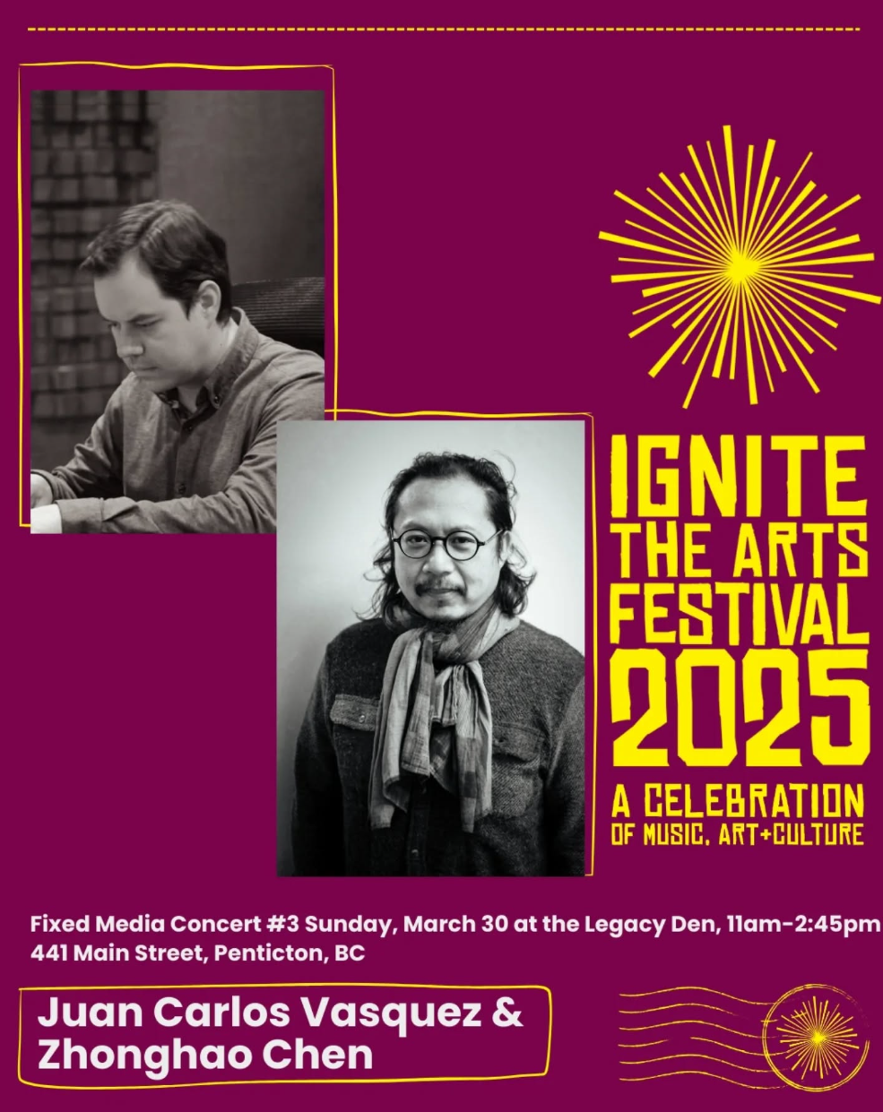 "Recursive Radiance" for an immersive 4-channel set-up was accepted for performance after a peer-review process at Ignite the Arts Festival 2025 in Canada. "Recursive Radiance" is the first project-based output of the RDF "Echoes in Space: Reimagining Chinese Traditional Instruments through Immersive Audio."Starting on Friday, March 28, and running until Sunday, March 30, the Ignite Festival Weekend is three days of nonstop music, performance, art, and workshops in ten venues in downtown Penticton (British Columbia), including the Elks Hall, Dream Café, Tempest Theatre, BritBar, Legacy Den, Highway 97 Brewery, Cannery Brewing, the Penticton Art Gallery, Be Hive, The Hub, and Hillside Winery.