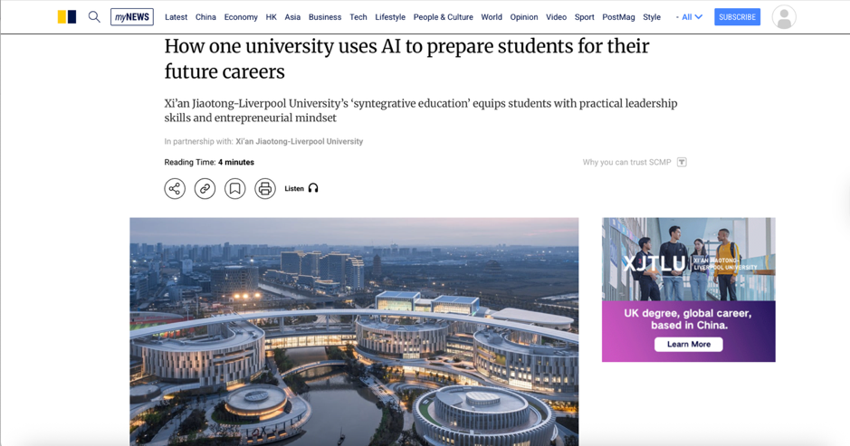 Summary: In a recent interview with South China Morning Post, Professor Xiaojun Zhang, Chief Officer of Education, explained that the University’s “Syntegrative Education” is designed to help students gain a deep, cross-disciplinary understanding of core industry issues. He also emphasised that outside of technical knowledge, the curriculum focuses on leadership and communication, noting that early exposure to real companies helps students “develop their passion for topics and fields that interest them”.