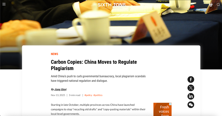 Headline: Carbon Copies: China Moves to Regulate Plagiarism