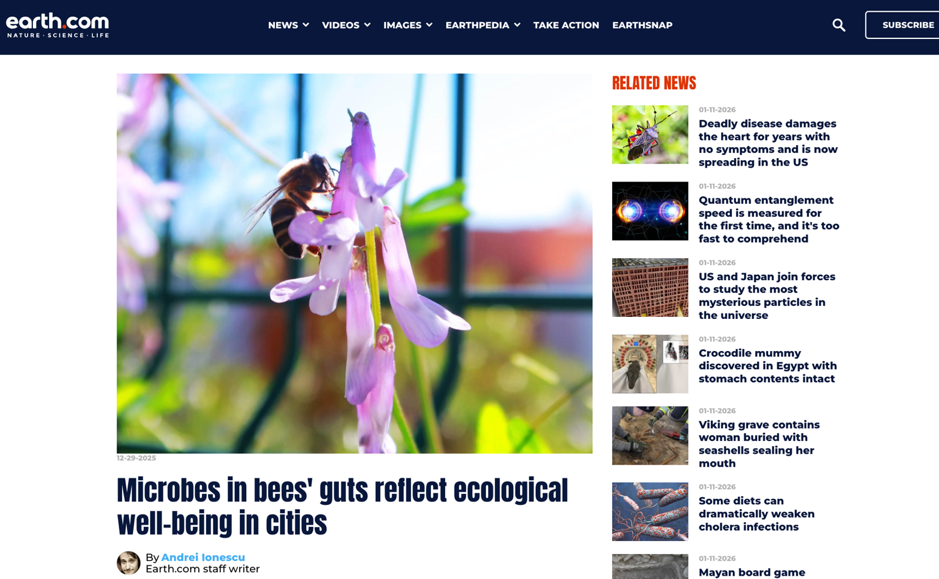 Headline: Microbes in bees’ guts reflect ecological well-being in cities