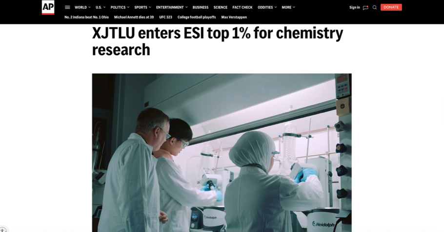 Headline: XJTLU enters ESI top 1% for chemistry research