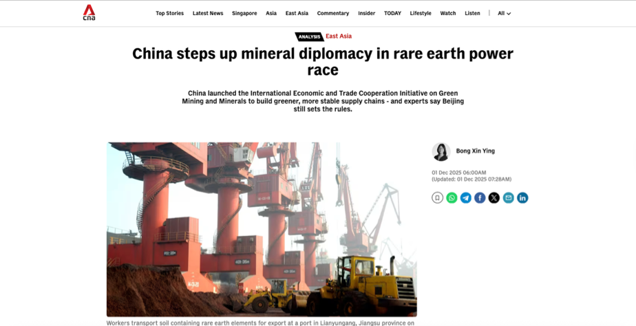 Headline: China steps up mineral diplomacy in rare earth power race