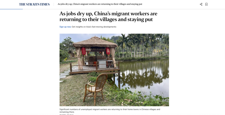 Headline: As jobs dry up, China’s migrant workers are returning to their villages and staying put