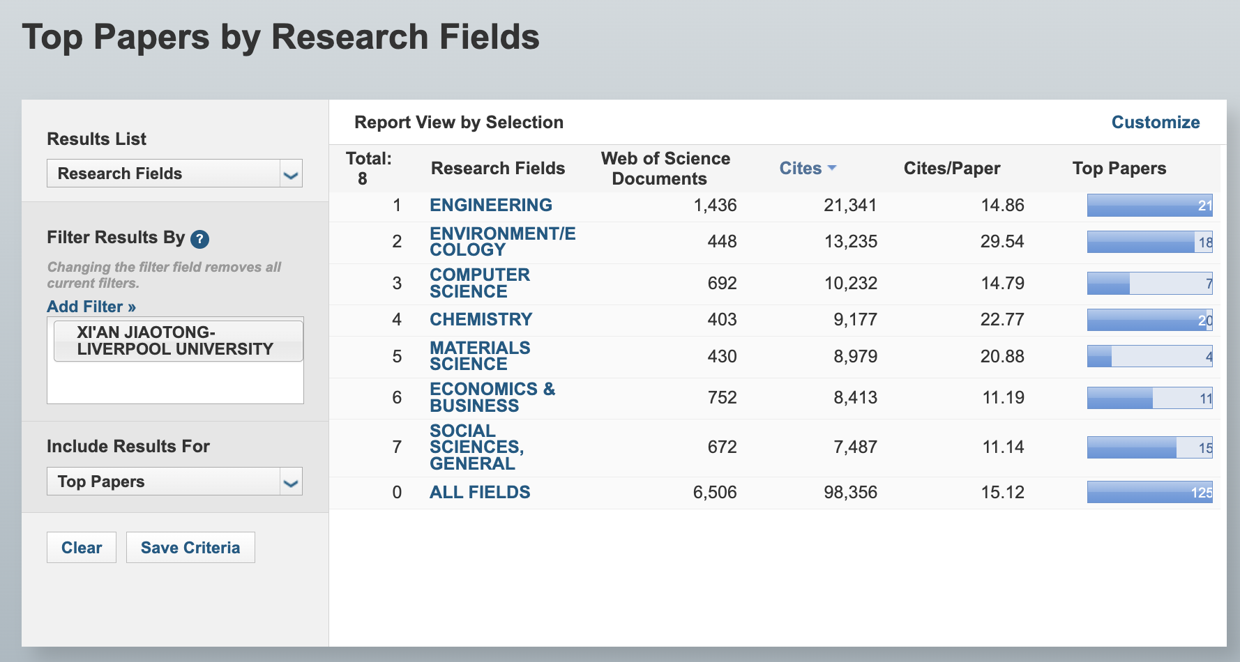 In the field of materials science, XJTLU has published 430 papers over the past decade and has accumulated 8,979 citations.
