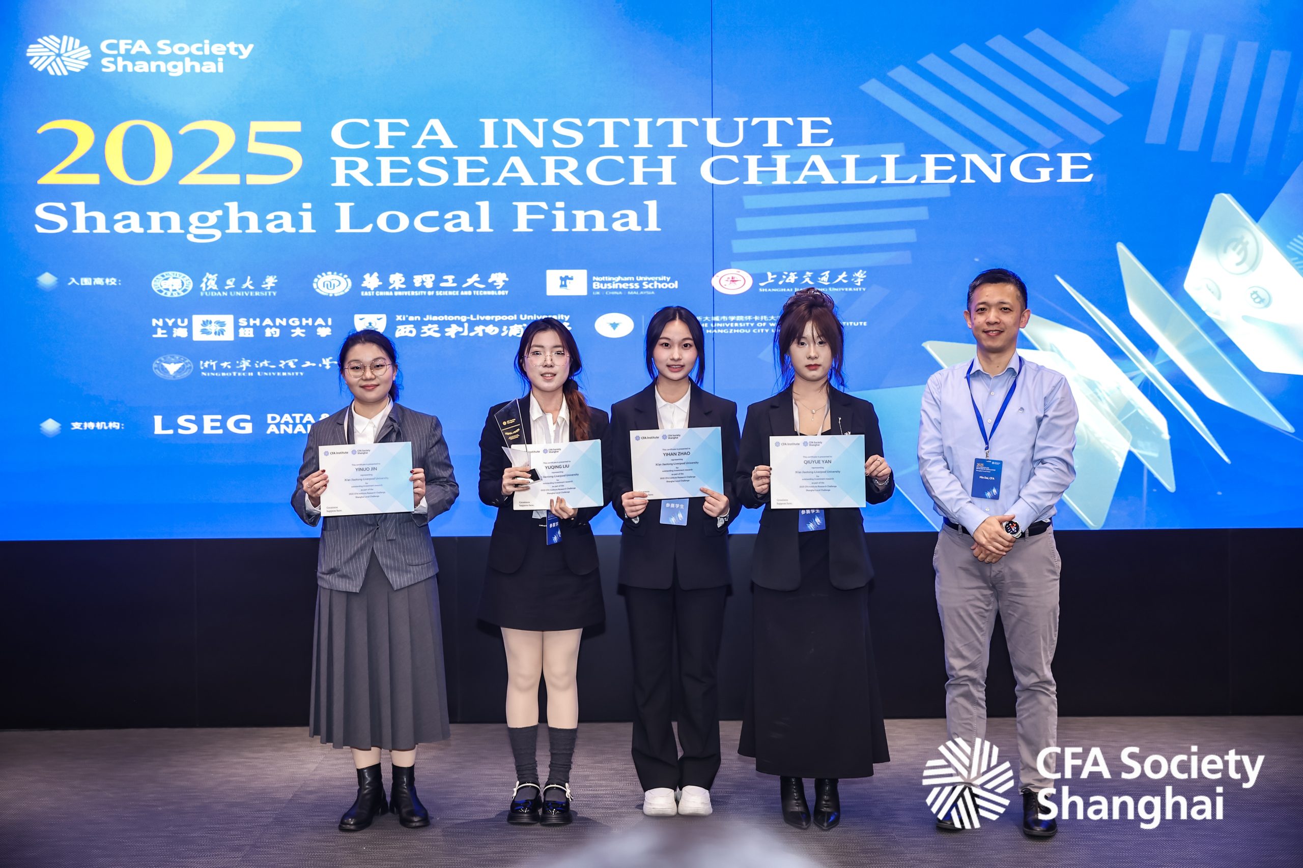 The student team from International Business School Suzhou (IBSS) at Xi’an Jiaotong-Liverpool University (XJTLU) achieved remarkable success at the 2025 CFA Institute Research Challenge Shanghai Local Final, garnering the Outstanding Performance Award. Held on December 20, the competition featured 24 elite teams representing 18 prestigious universities across the Yangtze River Delta region.