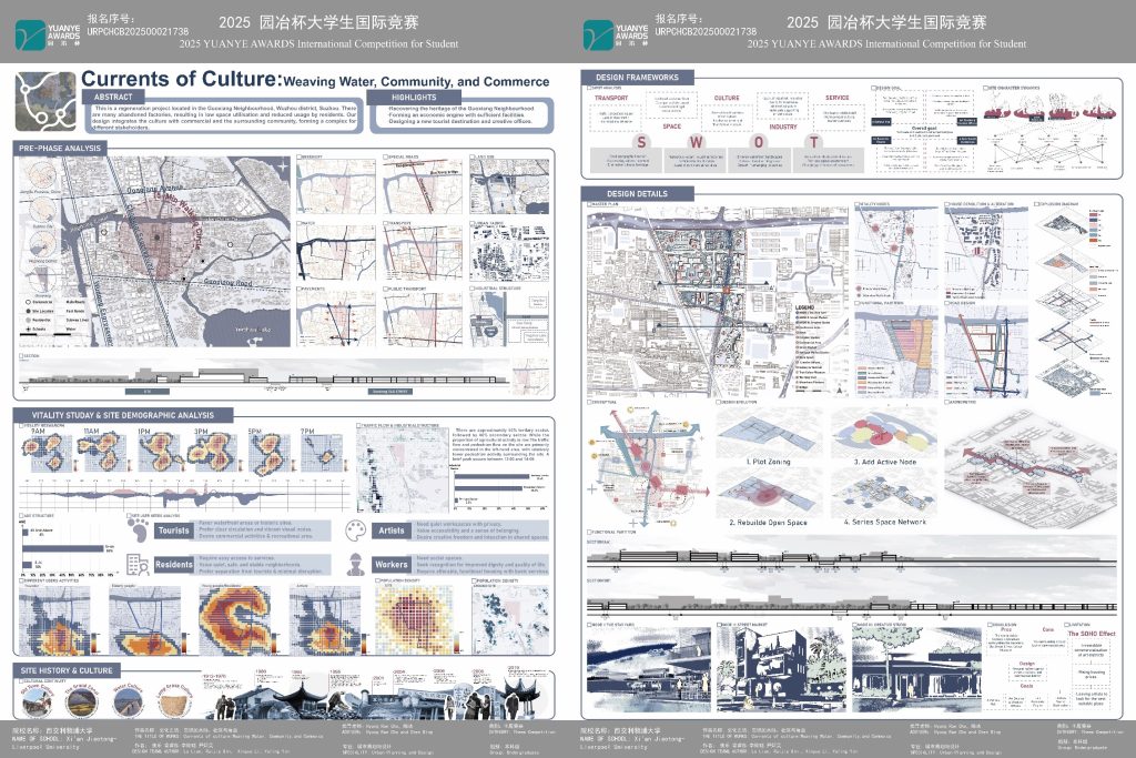 Currents of Culture was recognised for its strong analytical foundation and its sensitive approach to local identity. The team conducted a detailed study of vitality patterns, activity rhythms, demographic groups, and time-specific movements across Guoxiang. They explored how residents, tourists, artists, and workers use space differently and proposed a spatial structure that supports a peaceful coexistence of these groups.