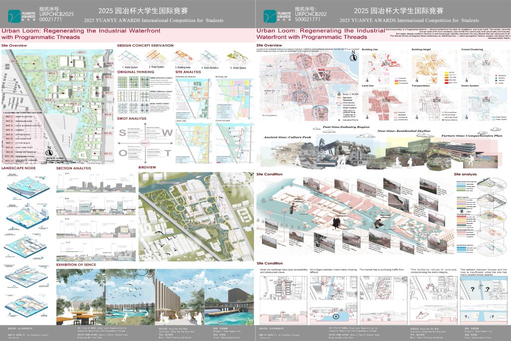 In addition, Currents of Culture: Weaving Water, Community and Commerce by Le Lian, Ruijia Qin, Xinyue Li and Yuling Yin, and Urban Loom: Regenerating the Industrial Waterfront by Hangyu Li, Daniel Sanchez Lopez, Mingxiang Wen and Jiayi Chen, both received Honourable Awards.