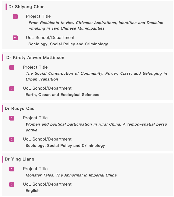 The 2025 academic year has been a testament to the programme’s success, marked by the graduation of 6 new doctoral scholars. Their PhD projects examine the evolving dynamics of identity, power, and social change in China, spanning from historical cultural analysis to contemporary studies of urban transition, rural politics, and speculative fiction. Their achievements extend far beyond their degrees, encompassing high-impact publications, prestigious awards, and promising career placements.
