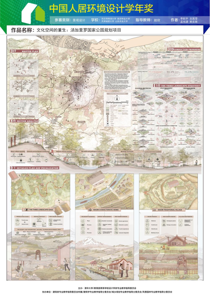The project, The Reconstruction and Renewal of Cultural Spaces: Tongariro National Park Planning, addresses the ecological and cultural conflicts within New Zealand's Tongariro National Park. The team proposed a "Third Space" strategy, aiming to establish a dynamic balance between stringent nature conservation, Māori indigenous cultural sovereignty, and public tourism development.