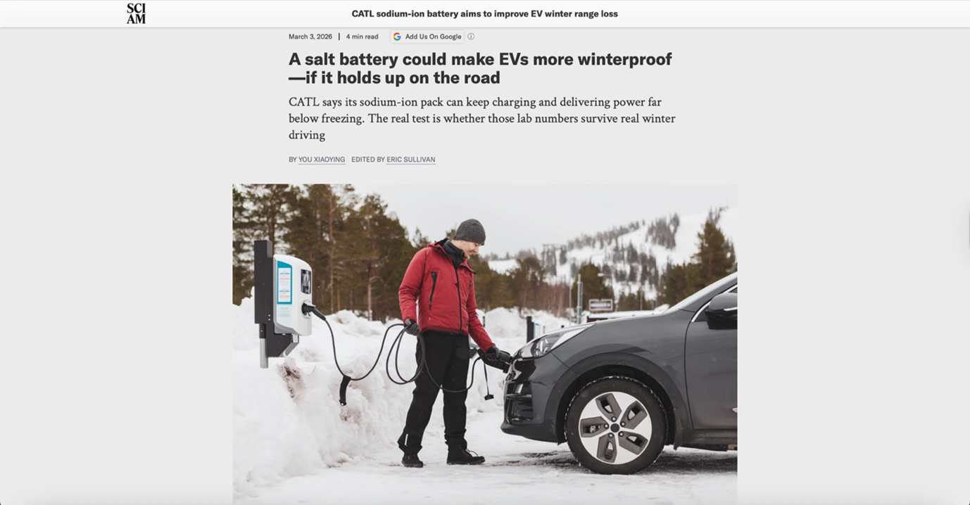 Headline: CATL sodium-ion battery aims to improve EV winter range loss
