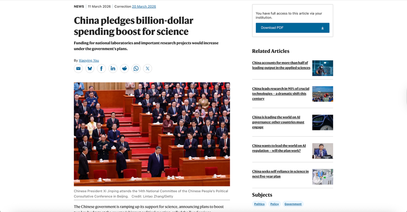 Summary: China has announced plans to significantly increase its science funding, proposing a minimum 7% annual rise in research and development spending over the next five years.