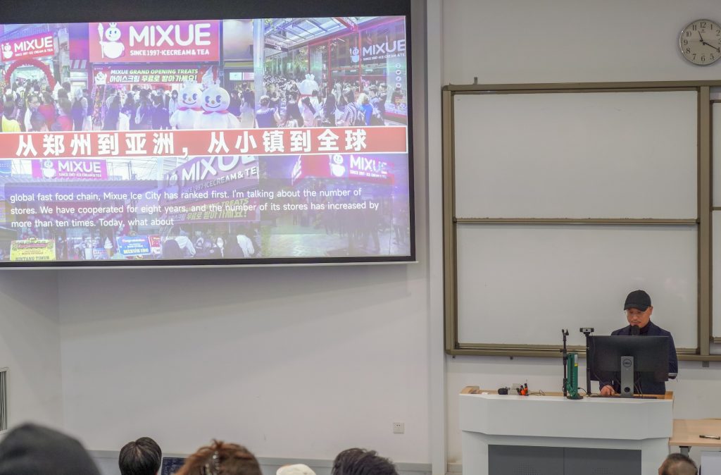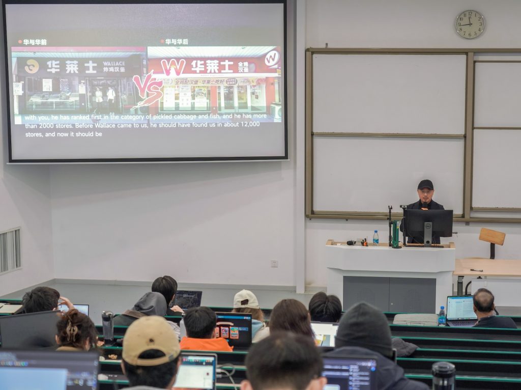 Chuan Wang, General Manager of Hua & Hua’s Spatial Business Department, introduces the brand design case of Mixue Ice Cream & Tea to students