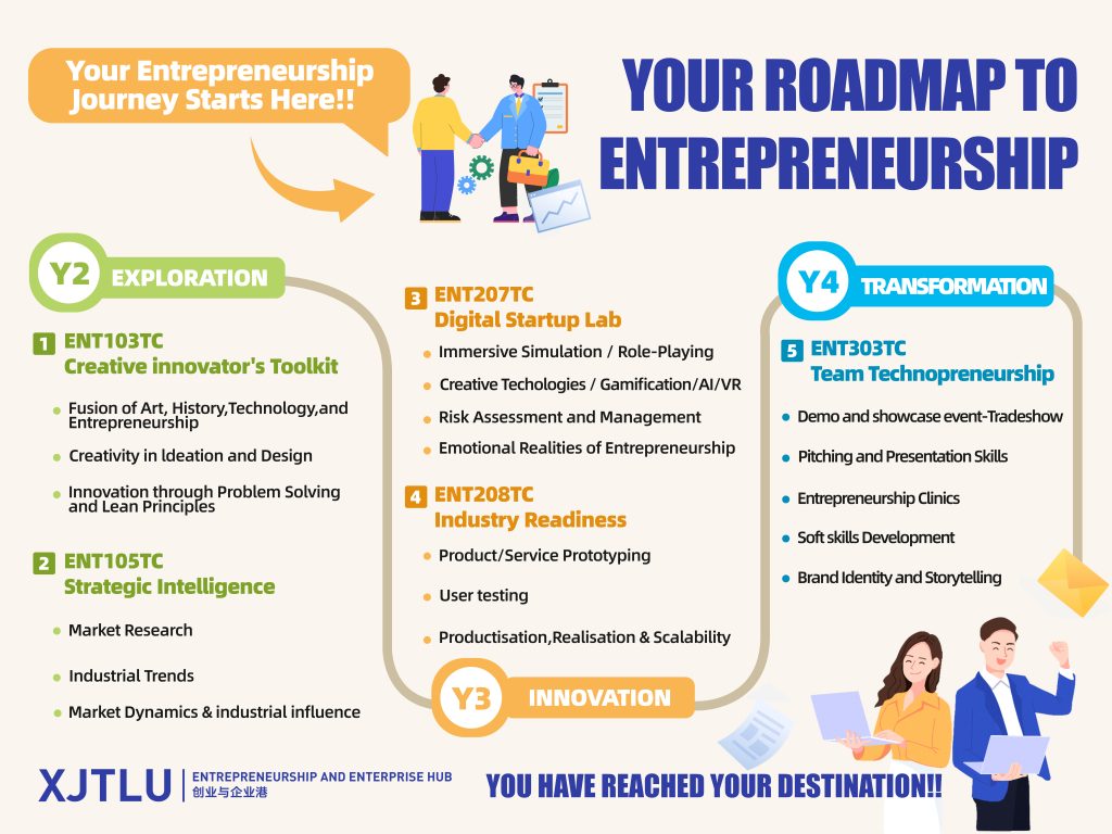 The Entrepreneurship and Enterprise Hub (EEH) is responsible for delivering the 25% minor curriculum for undergraduate programs, which serves as the core competency development pillar of engineering education at XJTLU Entrepreneur College (Taicang).