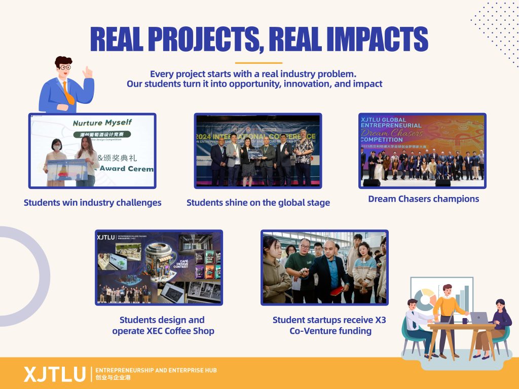 More importantly, these outcomes are deeply translated into practical applications: the student-initiated and operated XEC Coffee Shop is a prime example of turning creativity into tangible practice; some student-led startups have secured support from platforms like X³ Co-Venture, advancing to the stage of professional incubation and resource matching.