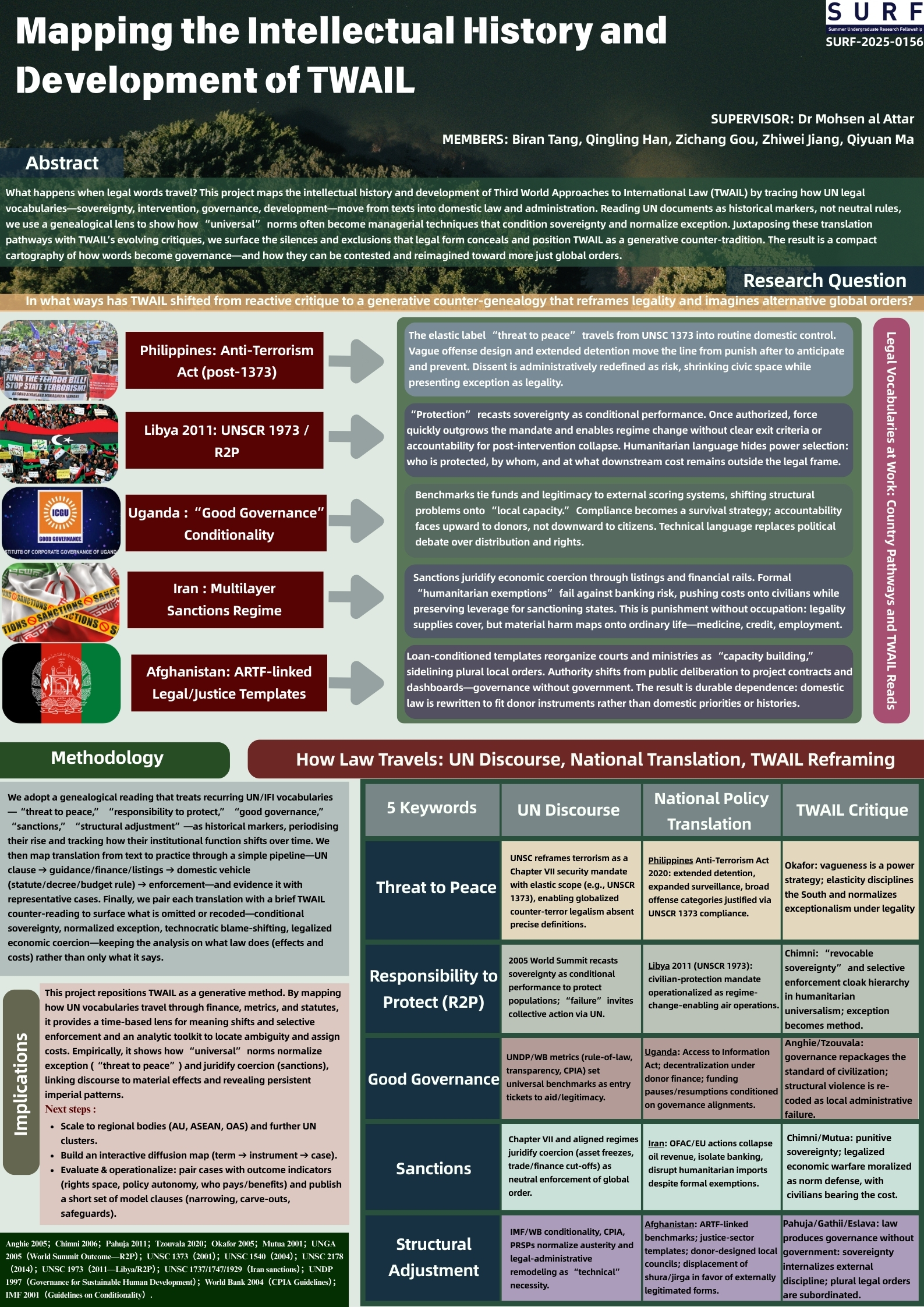 The department’s SURF projects provide a great opportunity for undergraduate students to gather hands-on research experience in international studies, allowing them practice research methods, engage with data first-hand, and develop organizational and leadership skills.