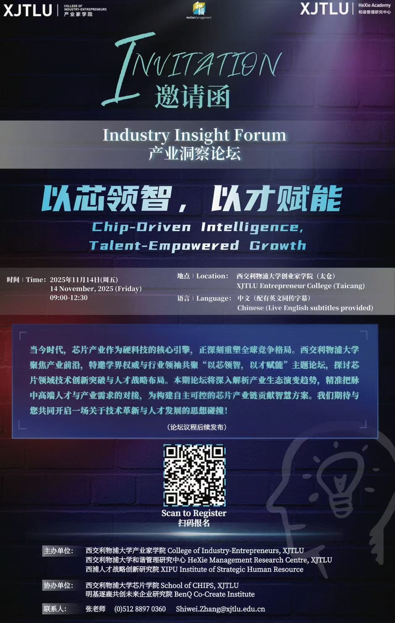 当今时代,芯片产业作为硬科技的核心引擎,正深刻重塑全球竞争格局。西交利物浦大学聚焦产业前沿,特邀学界权威与行业领袖共聚“以芯领智,以才赋能”主题论坛,探讨芯片领域技术创新突破与人才战略布局。本期论坛将深入解析产业生态演变趋势,精准把脉中高端人才与产业需求的对接,为构建自主可控的芯片产业链贡献智慧方案。我们期待与您共同开启一场关于技术革新与人才发展的思想碰撞!