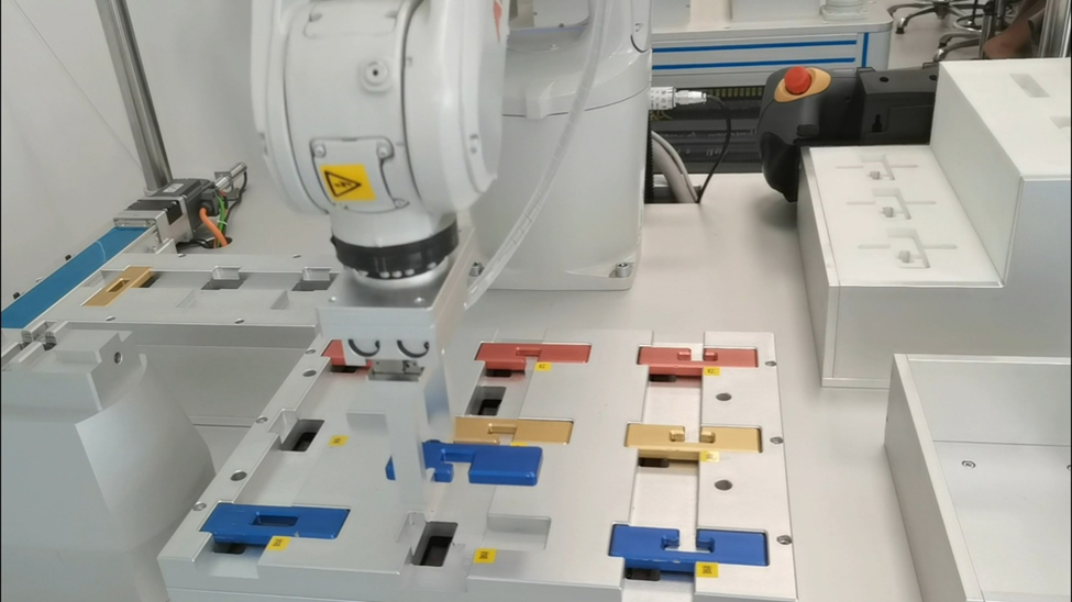 积累了编程基础后,林希在大二暑假参与了更深入的线下实践。他们前往南京博世工厂参观,了解自动化产线运作模式与工厂布局设计。团队还参与了由ABB机械臂执行的 “孔明锁” 装配训练,并完成了一系列产线自动化相关的模块学习。