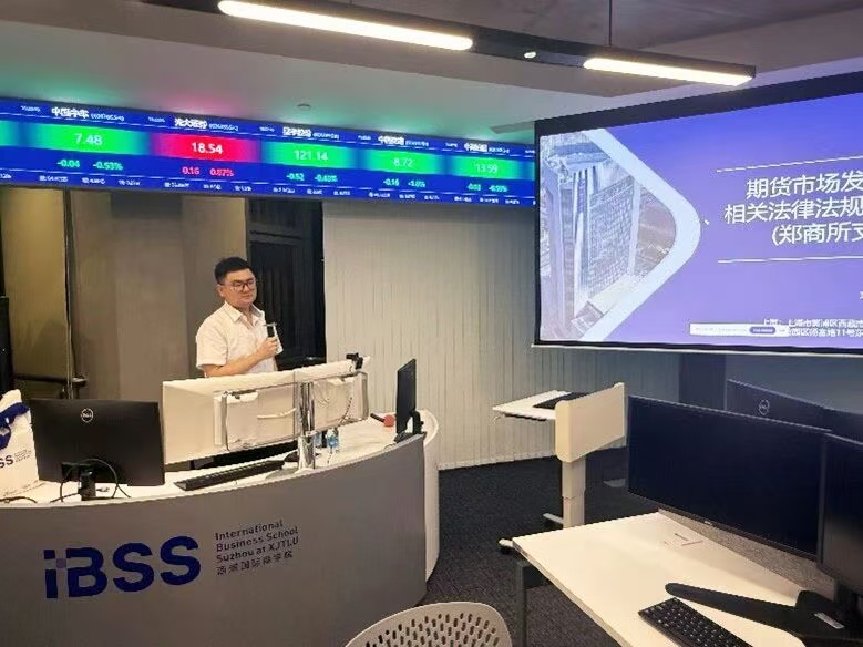 9月22日,西交利物浦大学西浦国际商学院(IBSS)就业与职业发展团队联合东吴期货,在IBSS金融交易大厅成功举办了“期货与风险管理实务分享会”。本次活动得到了金融交易大厅主任刘嘉涛博士的大力支持,吸引了90余名同学积极参与。活动围绕行业发展、实务操作与研究工具三大板块展开,帮助学生们从不同维度深入理解期货与风险管理在金融体系中的核心价值。