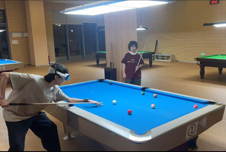 西浦创业家学院(太仓)人工智能与先进计算学院高级副教授周冕博士指导的“基于Apple Vision Pro开发沉浸式虚拟现实台球训练平台”项目,打造了一款沉浸式台球训练与评估系统。该项目使用Apple Vision Pro对台球进行球体位置以及运动轨迹拍摄,结合AI算法、三维建模等技术,构建虚拟台球场景,通过采集的数据指导用户决策选球击打角度、力度控制,实现个性化训练方案。