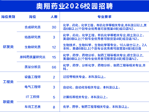 岗位学历要求涵盖本科与硕士,专业背景匹配度高,欢迎药学、药物分析、生物药、化学、生物技术等相关专业同学踊跃参与!