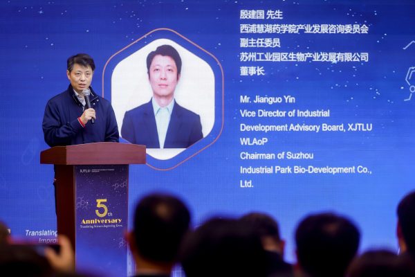 在西浦慧湖药学院产业发展咨询委员会代表致辞环节中,苏州工业园区生物产业发展有限公司董事长殷建国先生表示,产业发展咨询委员会作为连接药学院与产业界的重要桥梁,全程为学院的科研方向校准、专业设置规划以及课程内容设计等方面提供战略指导。他谈到,五年来有幸见证了药学院实现“高速成长”,在培养国际化高端应用型人才方面展现出坚定的决心、扎实的底气与显著的成绩。