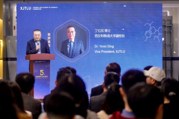 2025年11月11日下午,西浦慧湖药学院“五周年荣誉时刻”活动在西交利物浦大学北校区公共楼二楼开放空间正式举行。作为药学院五周年系列活动之一,本次活动以“共耀医药生态”为主题,回顾药学院五年发展历程,表彰在产业合作、学术研究及学生成长等方面作出杰出贡献的各界人士与师生,并共同展望生物医药乃至人类健康事业的无限未来。