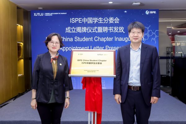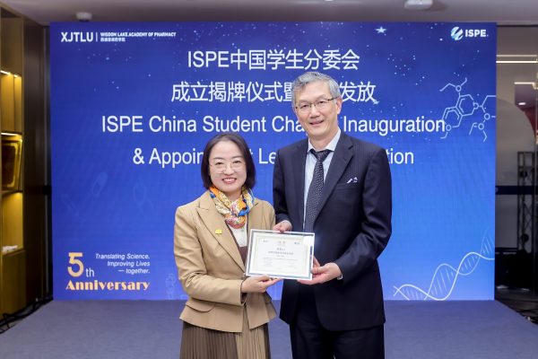 本次活动的重要环节之一,是国际制药工程学会(ISPE)中国学生分委会成立揭牌仪式暨聘书发放,西交利物浦大学副校长阮周林教授与国际制药工程学会(ISPE)上海代表处运营总监曹燕女士受邀共同为分委会揭牌。随后,国际制药工程学会(ISPE)中国理事会成员暨会员发展分委会主席戴斯亮女士向傅磊教授发放聘书,傅磊教授受聘担任ISPE中国理事会成员暨中国学生分委会主席。
