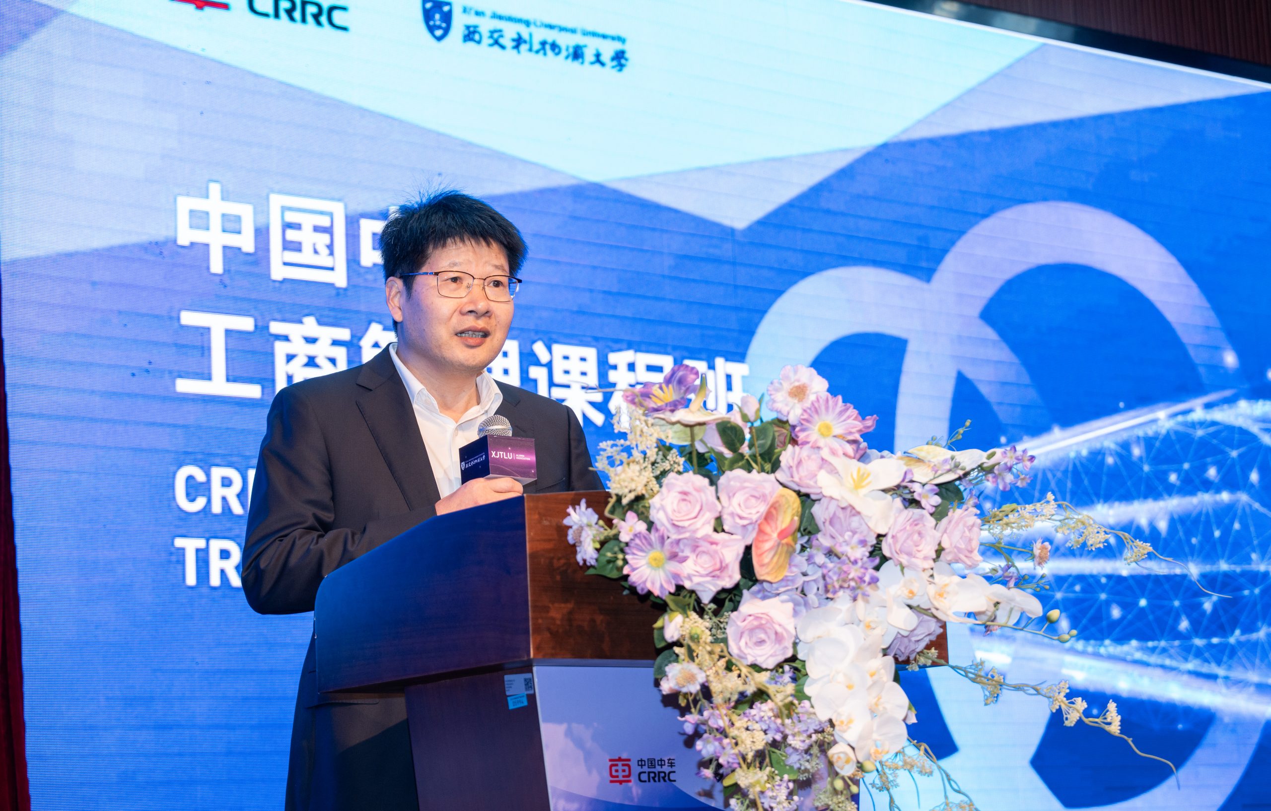 开班仪式上,西交利物浦大学副校长阮周林教授首先致辞。他指出,中国中车作为全球轨道交通装备行业的领军者,是中国制造的璀璨名片,而西交利物浦大学作为中英合作创办的研究型大学,始终以国际化视野深耕人才培养和产教融合。双方自2016年开启合作以来,深耕十年积累了深厚的合作基础与丰硕成果。本次工商管理课程班是双方合作的深化延续,课程以MBA核心课程为体系,量身定制了涵盖党建引领、战略思维、数字化转型等关键领域的学习架构,采用课堂教学、案例研讨、移动课堂、行动学习四位一体的教学模式,助力学员构建系统的管理认知体系。阮周林教授还介绍了西交利物浦大学历经三次教育模式革新形成的1.0至3.0并行的教育战略布局,强调学校将以优质教育资源为课程班提供坚实支撑。