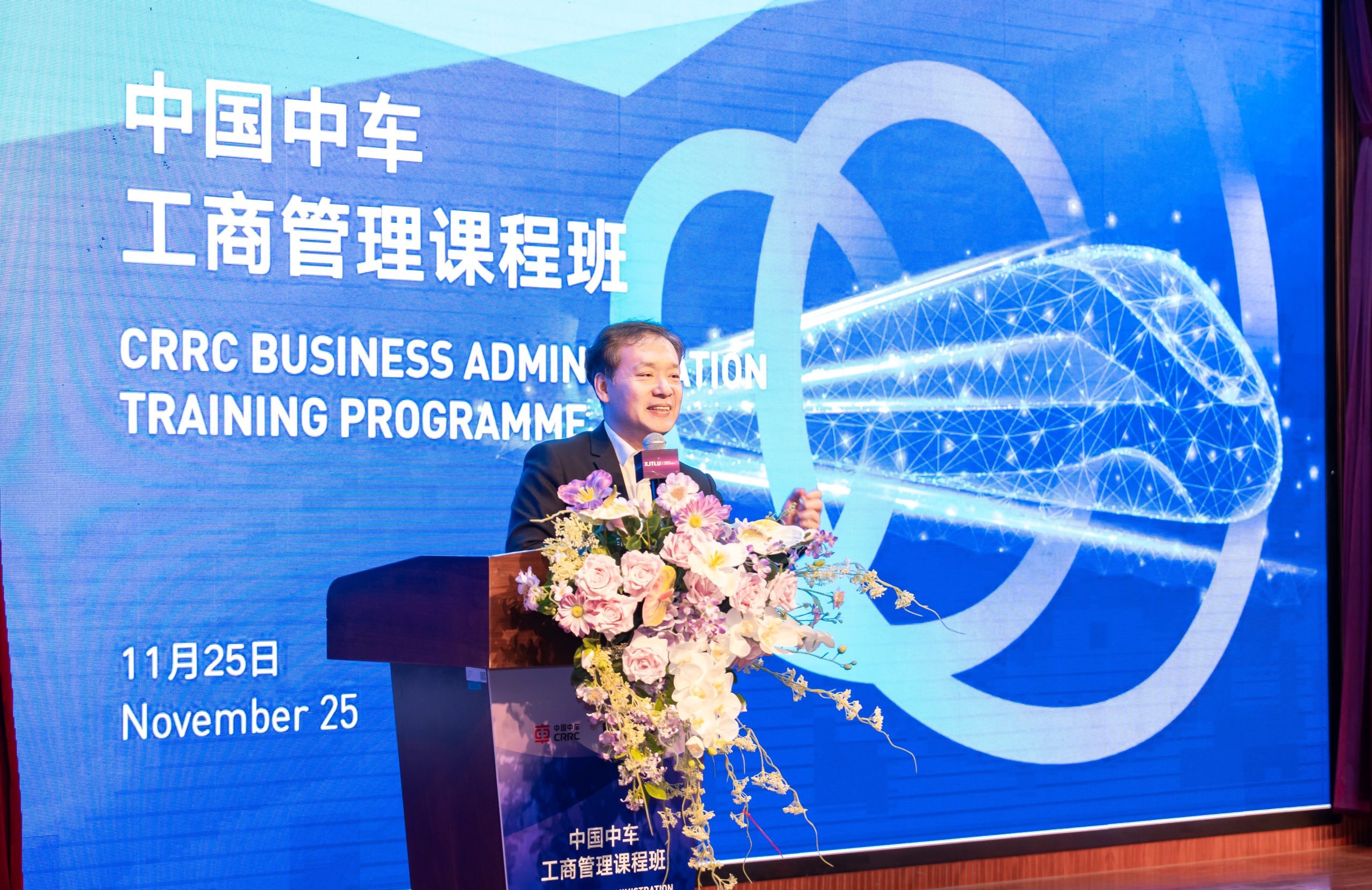 随后,中国中车集团人力资源部(党委干部部)人才发展处处长娄树国先生发表开班动员讲话。他提出,自去年起双方便高度重视本次培训,通过多轮深入研讨反复优化方案,匠心打造了契合需求的培训计划。他强调,本次培训班的举办是落实中车人才工作会议精神、打造优秀干部队伍的重要举措。围绕参训学员为中国中车所属企业中层管理人员、针对进一步强化系统管理思维和综合管理能力这一核心培训目标,他提出四点要求:一是深刻认识培训重要意义,增强自我革新的使命感与责任感;二是坚持学有所获,通过系统学习筑牢政治坚定、拓宽思维视野、对标先进查找不足;三是坚持学以致用,带着工作中的实际问题交流探讨,将学习成果转化为解题能力;四是严守培训纪律,确保培训取得实效。