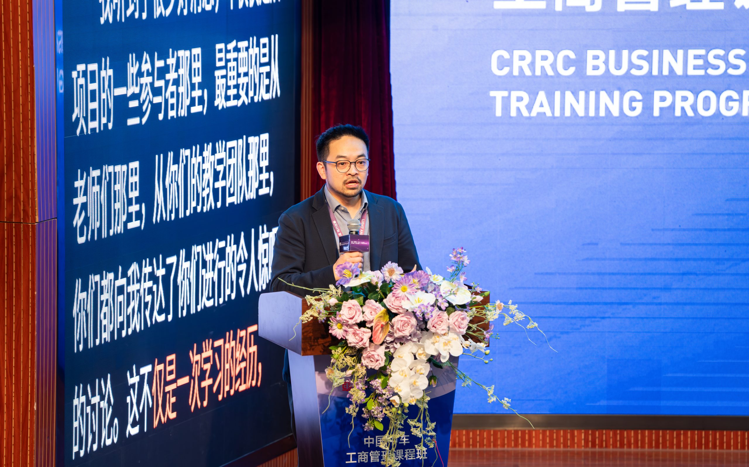 西浦国际商学院院长方世豪教授随后发表结业致辞。他指出,学院与行业领军企业中国中车携手开展工商管理课程班项目,是校企协同育人的成功实践。当前世界格局深刻变化,商业环境日趋复杂,此次课程举办恰逢其时,既为学员应对复杂多变的商业挑战筑牢根基,也为高校教学注入鲜活的企业实践经验。方院长高度肯定了学员们在课程中展现出的专业素养与探究精神,寄语大家将所学知识转化为发展动能,在岗位上勇攀高峰,再创佳绩。