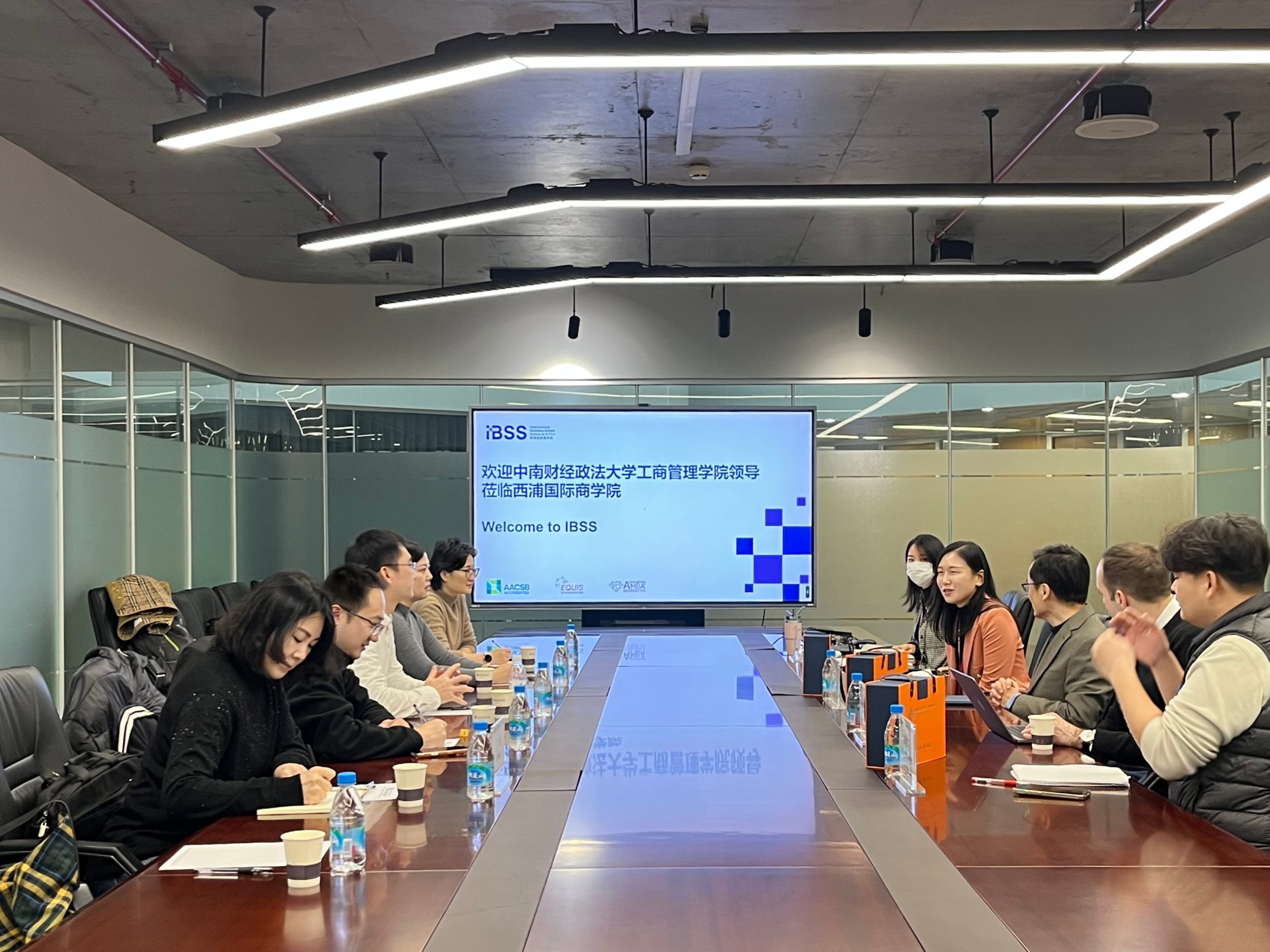 座谈中,双方聚焦五大核心议题展开精准对接与深入研讨。在校友资源联动方面,围绕校友资源共享平台建设,双方就行业沙龙、创业交流论坛等特色活动的策划与落地交换思路,探讨构建常态化校友互动机制;在行政管理效能提升领域,针对行政人员工作效率优化、岗位 KPI 考核体系设计、综合服务能力升级等实际问题,分享了各自的管理经验与创新举措;招生与品牌宣传环节,结合不同招生群体的需求特点,双方深入交流生源挖掘渠道、宣传策略创新路径,并就建立常态化品宣合作机制达成共识;国际化发展层面,双方围绕 AACSB、EQUIS、AMBA 三大国际商科认证的申报与维持经验展开深度分享,为彼此的国际化建设提供了宝贵借鉴;在师资队伍建设方面,中南财经政法大学工商管理学院详细介绍了人才引进政策与待遇体系,西浦国际商学院则分享了多元化学术团队构建、海外人才引育的特色模式。