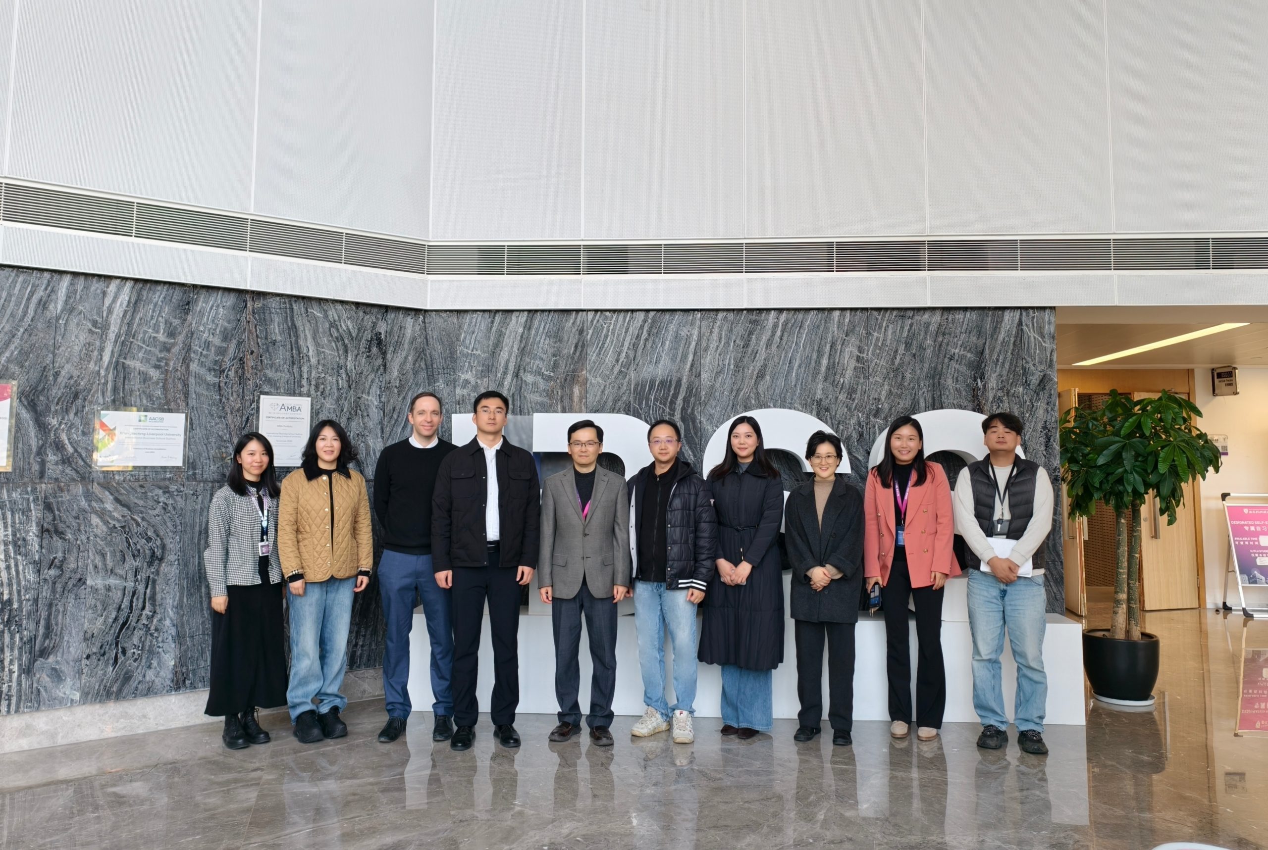 2025 年 12 月 8 日上午,西交利物浦大学西浦国际商学院(IBSS)迎来了中南财经政法大学工商管理学院营销管理系项典典副教授、党政办主任曾紫荣、副主任杨思琦、MBA教育中心财务主管丁怡、MBA教育中心品宣主管任静一行5人,双方围绕商学教育创新发展、资源共享协作等核心议题开展深度座谈。此次交流旨在搭建校际合作桥梁,整合优质教育资源,共同推动商学人才培养质量提质升级,西浦国际商学院科研副院长钱力显教授携核心团队热情接待并主持座谈。