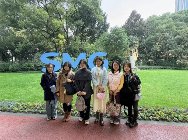 11 月 21 日,人文社科学院企业探访(Company trip)组织的上海广播电视台及旗下第一财经(CBN)参访活动顺利开展。在学院学生发展主任、媒体与传播系胡婷婷博士的带领下,五位大二及研一新生沉浸式走进财经媒体生产一线,完整亲历了从传统广播到数字化产出的全链条运作,对导控间的实时协作机制、演播室的专业规范体系、新媒体的直播逻辑以及8K技术,AI 赋能的新闻生产新模式建立起具象认知,更对媒体行业的技术迭代逻辑与职业发展趋势形成了系统性思考。