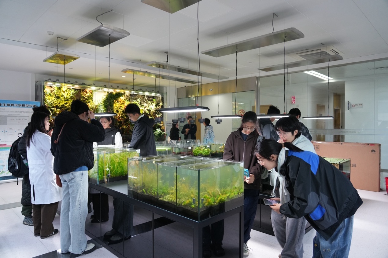 工作人员向学生介绍这些系统在生态监测中的应用:水生植物对环境变化的响应;模拟湿地如何用于评估水生态恢复;城市水体治理中的关键指标与实验方法。