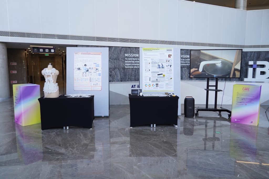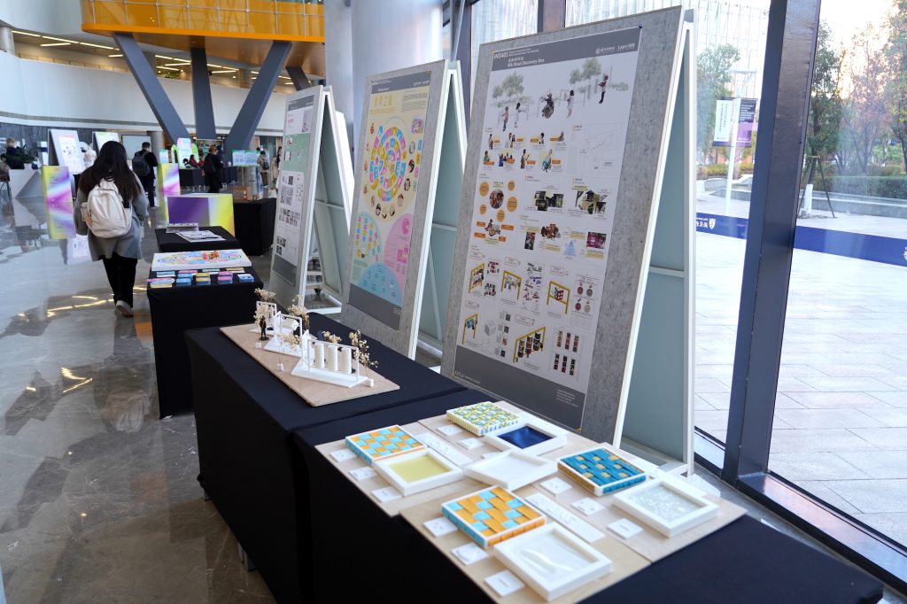 圆桌讨论结束后,师生来到 IBSS 一楼,参观了“无障碍与包容研究与学术展”。展览展示了设计学院与智能工程学院的研究成果,涵盖无障碍环境、智能产品、多感官体验设计等创新实践。展览还呈现了 IND403“社会创新设计”课程的学生作品,该课程与苏州丝绸博物馆及姑苏区特殊教育学校协作,引导学生设计包容性的解决方案,提升各种人群在博物馆中的学习体验。