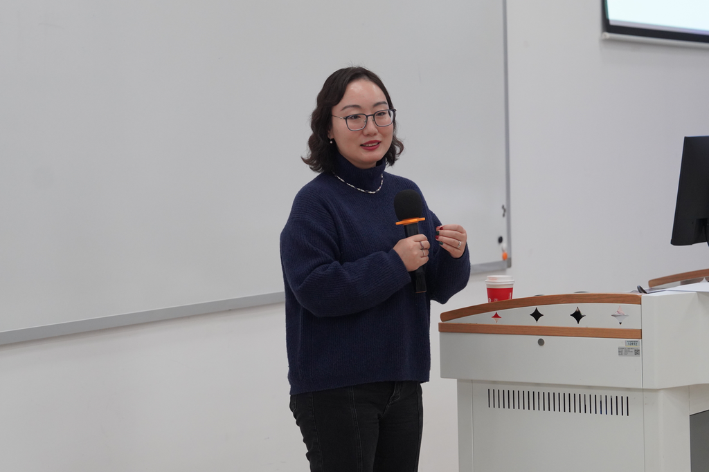 接下来,学院校友会负责人、应用语言学系助理教授孙青阳博士(上图),介绍了校友会的现状和规划。她表示,人文社科学院在实习资源和就业资源方面有很多拓展、合作可能,希望更多校友和教师参与校友会建设,形成支持网络。