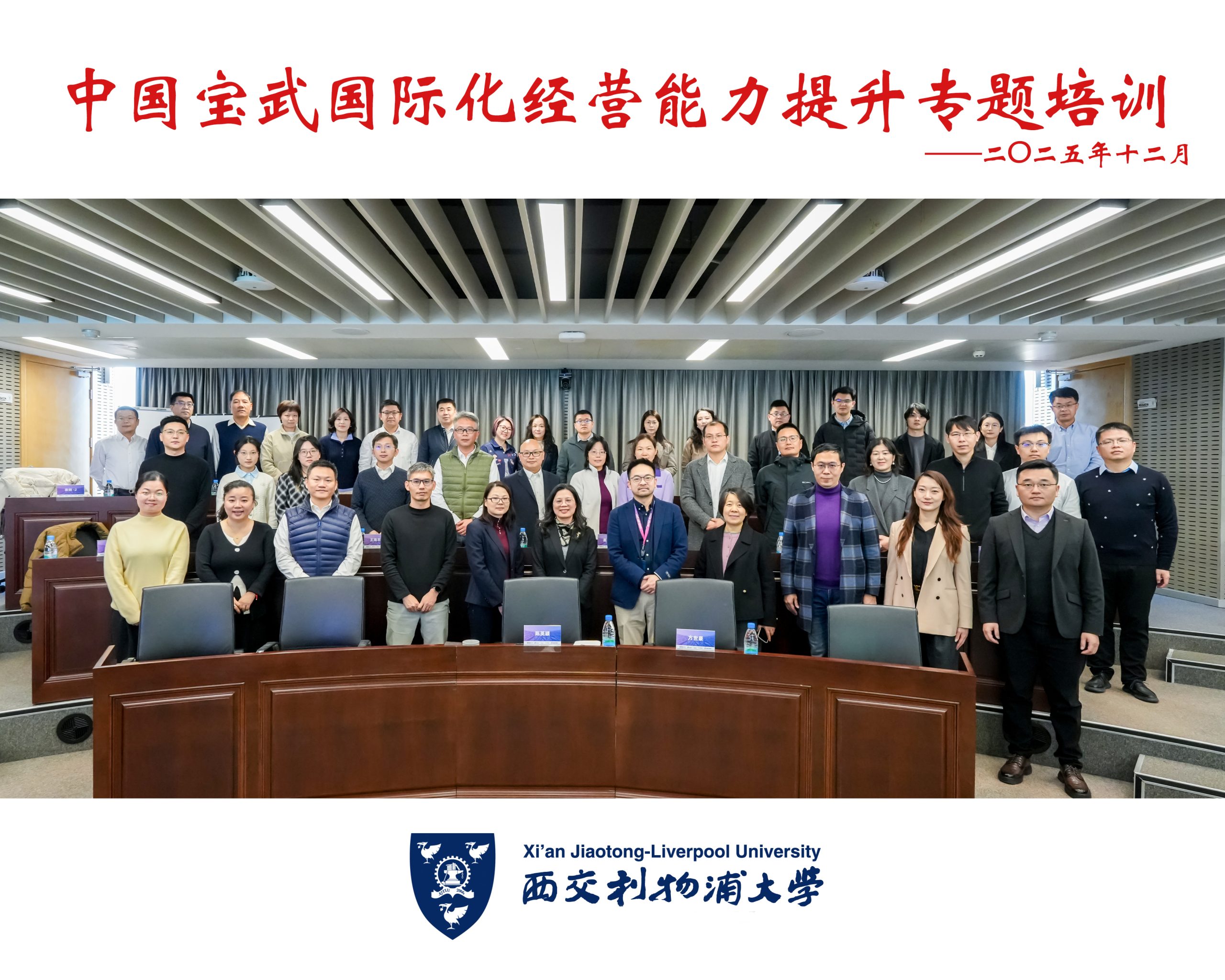 2025 年 12 月 18 日,为期四天的中国宝武国际化经营能力提升专题培训在西交利物浦大学西浦国际商学院(IBSS)圆满结业。37 名来自中国宝武各相关业务领域的骨干学员,通过系统理论授课、实战模拟演练与深度专题研讨,全方位夯实国际化经营理论基础、锤炼实战应用能力,为集团深化全球战略布局、冲刺世界一流企业注入强劲动力。
