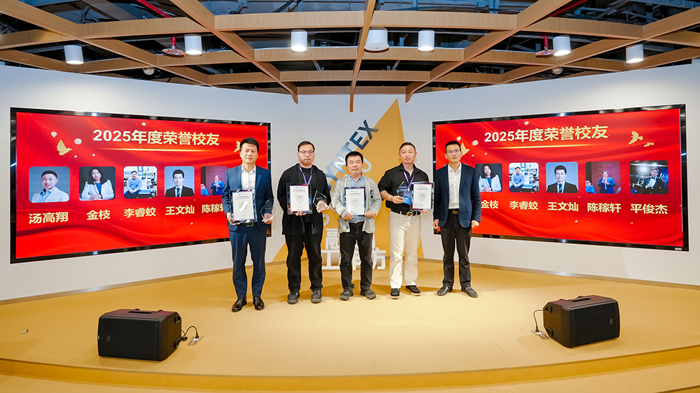 图为李睿蛟(左三)被评为西浦2025年度荣誉校友