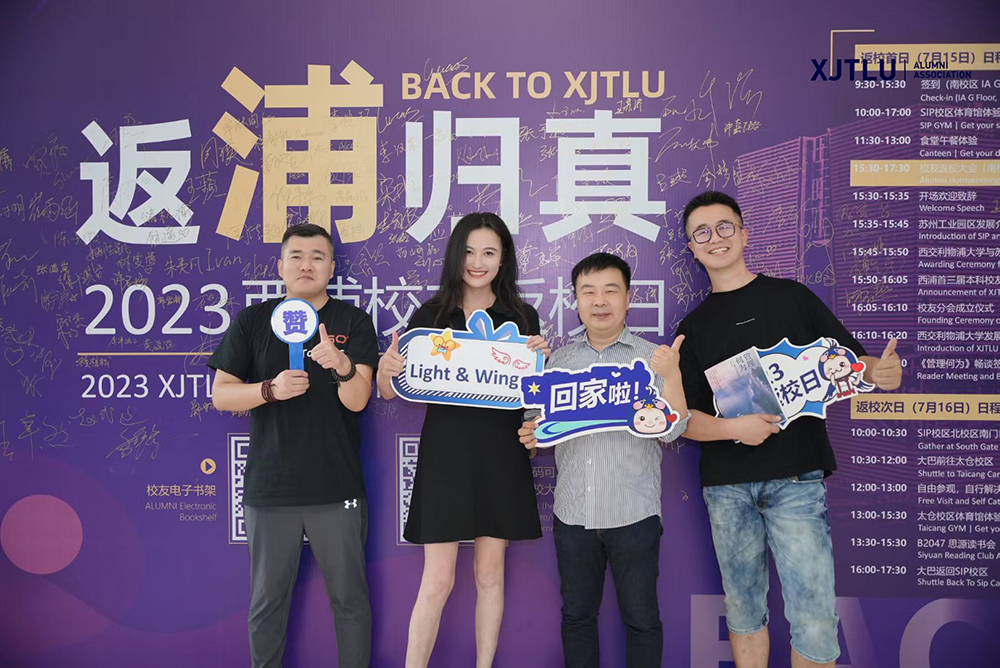 图为李睿蛟(右二)参加2023西浦校友返校日活动