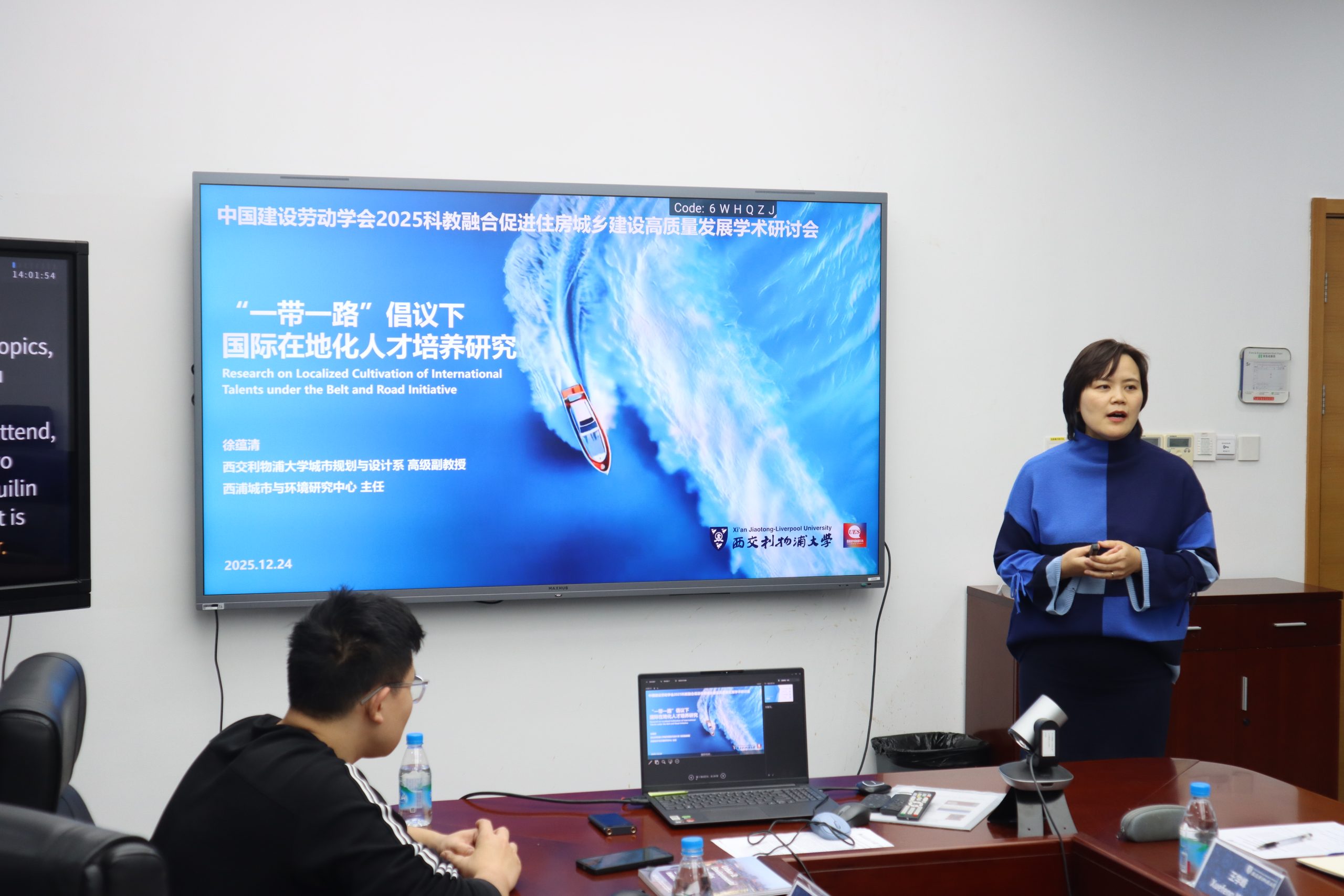 西浦城市与环境研究中心主任徐蕴清博士汇报了“一带一路倡议下的国际在地化人才培养研究”课题设计与进展。