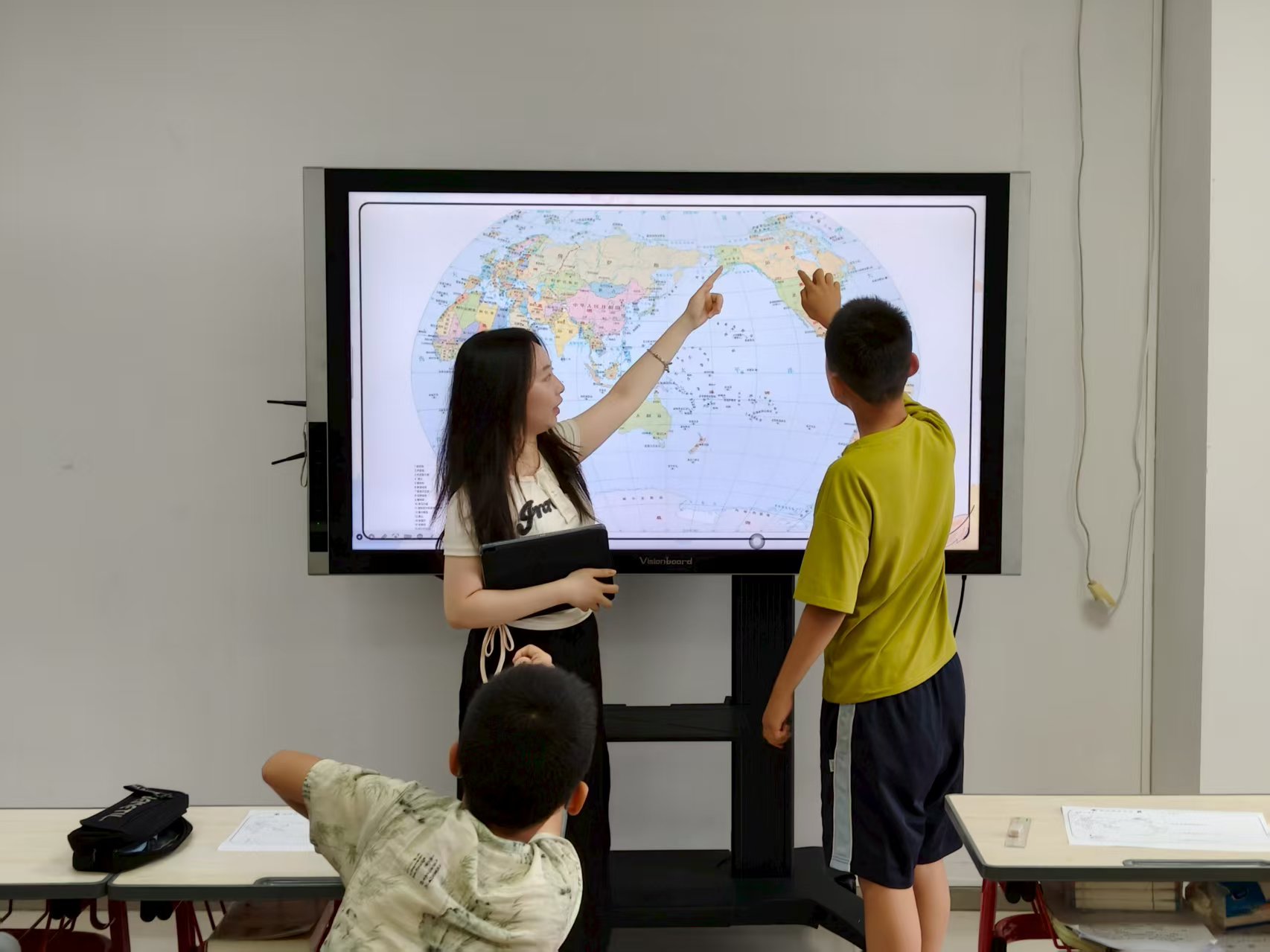 志愿者团队由四名本科生与研究生组成。在课堂中,他们充分发挥人文社科专业素养,将课堂所学的地理文化知识、跨文化沟通理论、教育教学方法等专业内容,转化为符合社区儿童需求的趣味内容。通过地图动画、文化故事,从欧洲古堡的历史底蕴到美洲的多元融合、从非洲的自然奇观到大洋洲的独特地貌,用生动表达点燃孩子们的探索热情。