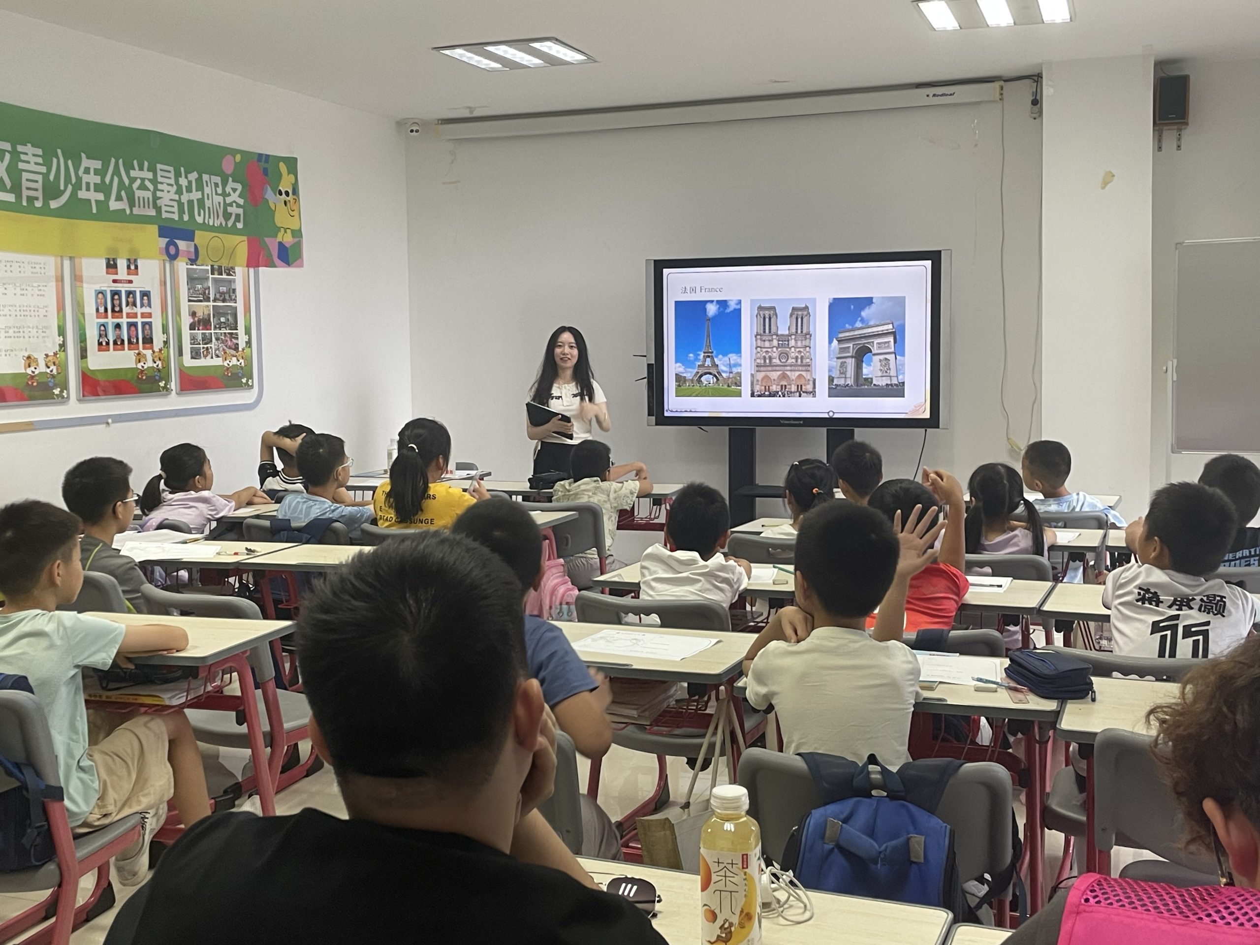 2025年暑期,西浦人文社科学院中国研究系助理教授Echo Wang博士的带领下,4名本硕志愿者走进苏州枫桥康佳社区暑托班,开展为期三周的“西方国家地理”公益课程。该项目以非盈利形式为社区儿童提供文化启蒙与实践体验,在缓解家长照护压力的同时,搭建高校与社区协同育人的实践桥梁。