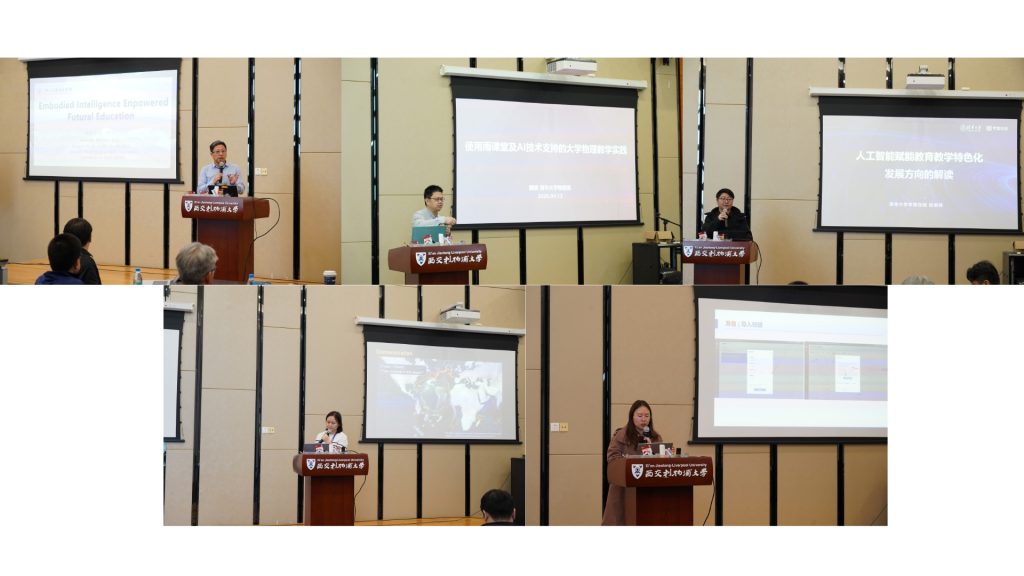 研讨会展示了AI与各学科教育融合的多维视角。浙江大学的翟雪松教授探讨了具身智能时代未来教育的范式转型。随后,清华大学魏斌教授与清华学堂在线江苏负责人阮枫林老师,分别从大学物理教学实践及特色化发展方向角度,分享了AI技术与智慧教学工具的深度结合。