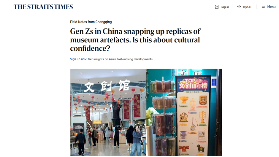 《海峡时报》:中国Z时代热衷购买博物馆文物复刻品,这是否体现了文化自信?(新加坡)